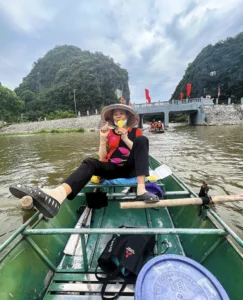 While cruising along the Ngo Dong River, pass the filming locations of the movie Indochine. Continue through limestone cliffs to Hang Ca Cave, then glide past rice paddies toward the second cave, Ngo Dong, and later Hang Ba, the third cave.
